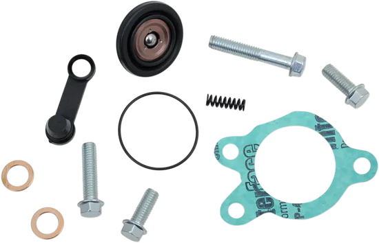 This Moose Clutch Slave Cylinder Rebuild Kit contains all of the necessary components to repair a leaking slave cylinder, including copper washers, seals, O-Rings, gaskets, springs, and screws.