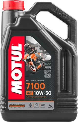 Motul 7100 4T Synthetic Oil is excellent for stop-and-go city riding and offroad bikes. Formulated to meet the latest manufacturer standards in terms of consumption and fuel economy. Improved comfort thanks to improved engine and gearbox performance, with smoother day-to-day commuting and shifting.