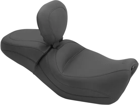 Mustang's Standard Touring seats feature a deeply pocketed driver bucket that sits you at the ideal cruising angle at a similar reach compared to stock. The on some models the driver's back is well supported by the nose of the passenger seat that extends forward, or via the optional built-in driver backrest that is fully adjustable and easily removable without tools. The entire width of the comfortable rear seat is fully supported by Mustang's unique internal steel wings for unbeatable 2-up comfort and support with no sagging on the edges. Built on a marine-grade fiberglass baseplate, the two-piece seat mounts just like stock.