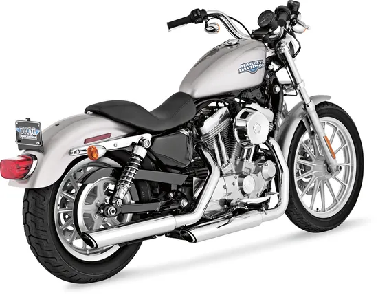 Twin Slash 3-inch Slip-On's from Vance and Hines is an excellent choice for a quick and inexpensive upgrade to your Harley. These mufflers offer a sleek appearance with improved performance and an even better sound. Mufflers are sold in pairs and available in chrome, matte black, and wrinkle black finishes.